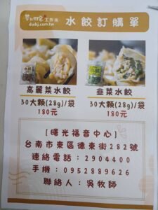 為籌措福音基金、義賣基金,與「帶我回家」水餃、農倉冰品(夏季)、農倉冷凍食品(冬季)合作推廣的零售、團購,支持自力更生方案。